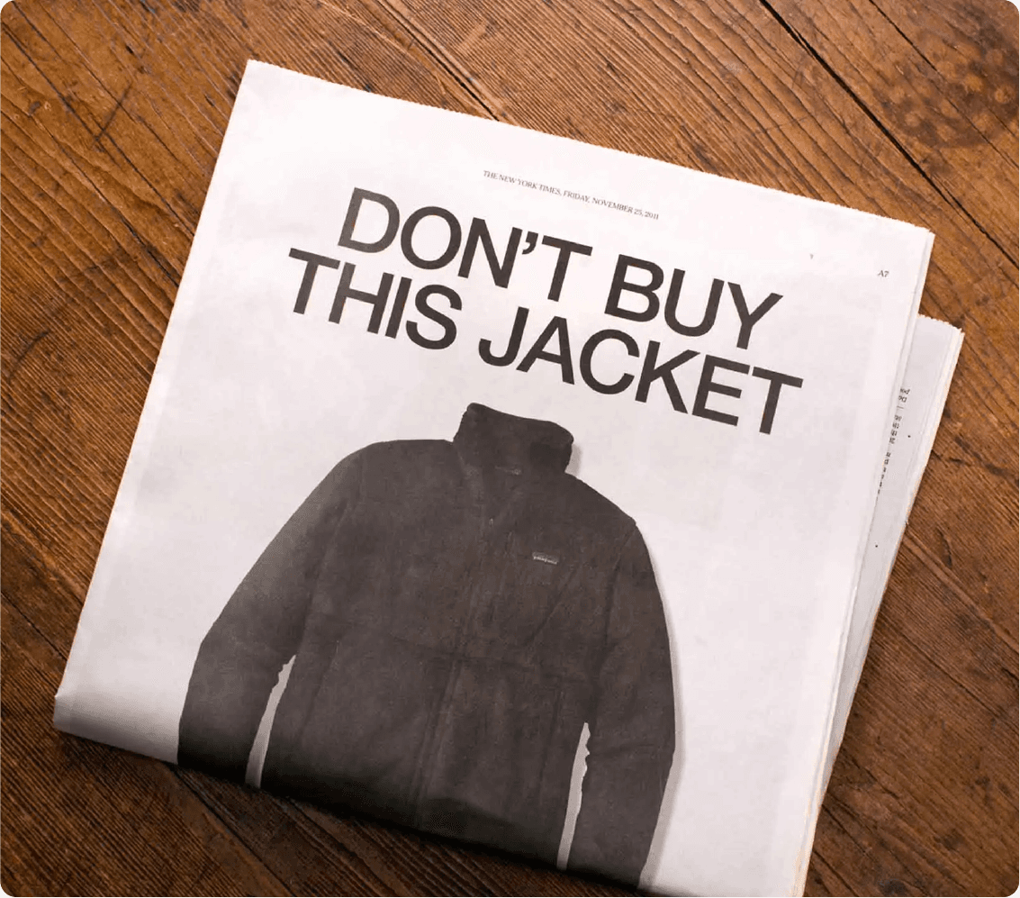 Don’t Buy This Jacket - 파타고니아는 “이 재킷을 사지 마세요”라는 도발적 광고로 환경 부담을 줄이는 소비를 촉구했지만, 아이러니하게도 매출은 30% 증가했다.